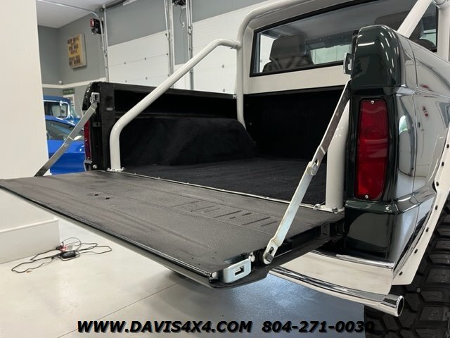 1966 Ford Bronco Half Cab 4x4 Restored Classic. This is one incredible looking half cab baby Bronco pictures do not do it justice. According to documentation this was an original half cab and only 6930 were ever produced. With the documentation we obtained with this vehicle it not only had a cosmetic, but also a mechanical restoration, including a 2 1/2 inch suspension lift, new 35 inch tires and 15 inch Mickey Thompson style alloy wheels, adjustable track bar, four-wheel-drive system service and gone over. Under the hood, new plugs, wires distributor, carburetor, starter, alternator, painless wiring harness system, new water pump, new fuel pump, radiator and fan, new battery and battery wires, overflow bottle, washer, reservoir, new gas tank, new steering gear box, dual exhaust and all new belts and hoses. The original tub and floorboards are original equipment on this with no signs of rust, solid tailgate doors, fenders body fitment door alignment. Everything is extremely spot on seats have been recovered in a soft leather, matching the dash billet knobs, crank handles etc, era correct steering wheel and completely original looking interior with three on the tree shifting and floor shift four-wheel-drive. We don’t often see that something would be Mecuum or Barrett Jackson Quality but seeing some of the recent items that have been purchased through those auctions we would have to see this unit is like Quality to what would have run across the block in this price category. This unit was not overly dressed on the undercarriage to show its originalness and they have done an extremely good job of keeping it factory original and proper eta correct for the time period. The odometer cluster was also rebuilt on this unit so we do not have an accurate tracking of the current mileage. Unfortunately we’ll have to sell as TMU. This is a running driving operating and can ship this unit anywhere in the continental US or assist with out of the country sales.