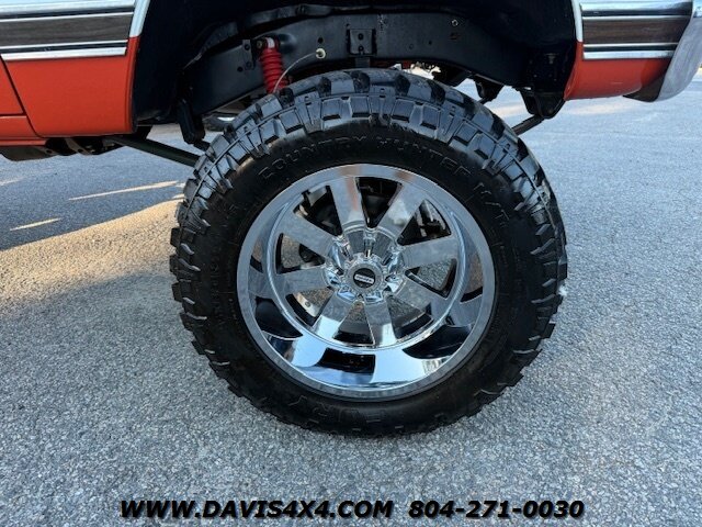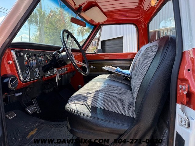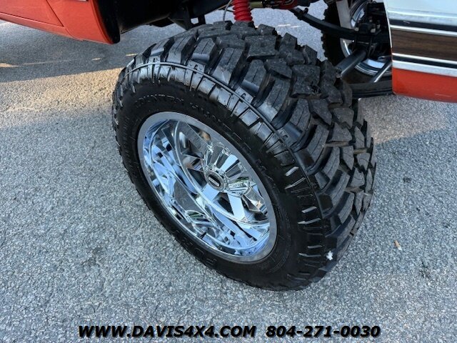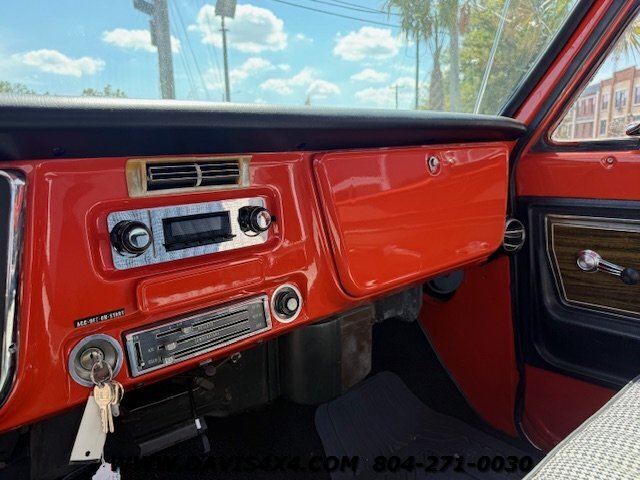 This classic Chevrolet Super Cheyenne K10 4x4 is a standout example of a highly desirable and well-optioned squarebody truck, and it quickly became one of our most talked-about vehicles when teaser photos were released. Finished in the iconic Hugger Orange with a white two-tone—featuring a subtle pearl/metallic flake visible up close—this truck has both the look and the features to match. It’s equipped with a factory tachometer, factory air conditioning (compressor removed but bracket, lines, condenser, and evaporator remain for easy reinstallation), and the classic houndstooth seat material. Other highlights include a brand-new retro-style Bluetooth stereo system (with the original radio and woodgrain trim panels still intact), full-length stainless trim, gleaming chrome, and a 6-inch lift. This long-bed model also features the rare bedside toolbox cut-out, power steering, power brakes (with a new master cylinder, booster, and proportioning valve), new alternator, new carburetor, dual Flowmaster exhaust, replacement gas tank, freshly serviced transmission, and countless details—right down to the functioning dome light. This truck is fully inspected, freshly serviced, and truly turnkey. With a huge range of available tire, wheel, lift, and accessory upgrades, the possibilities are endless for customizing this or any of our Squarebody generation trucks. For a closer look, check out the detailed video on the Davis Auto Sales VA YouTube channel, as well as additional clips on the Davis Drives YouTube channel.