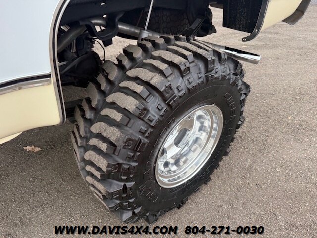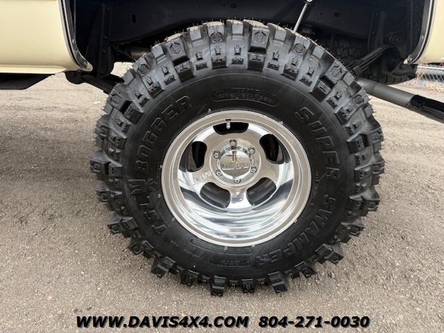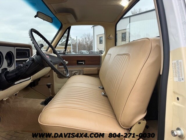 . This truck offers a clean, classic look paired with modern performance, thanks to its 6.0L LS fuel-injected engine upgrade. It rides on a 6-inch suspension lift with new 35 boggers on Mickey thompson offset 16x12 canyon wheels or optional (fresh 35-inch BFGoodrich All-Terrain tires mounted on GM 4x4 rally wheels) (alternate tire and wheel options other then these are available). The interior is extremely clean and tastefully finished in light brown and tan with woodgrain door panels, a perfect-condition dash, retro-style stereo, and a vintage air conditioning system. Additional highlights include full stainless Racetrak trim, spray-in bedliner, dual fuel tanks, front bumper bumperettes, clean glass, properly functioning interior components, and even the original spare mounted underneath with dual exhaust. Be sure to watch the full walkaround video of this impressive Squarebody on the Davis Drives YouTube channel — this one truly captures the timeless classic look with the best of modern upgrades.