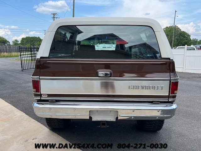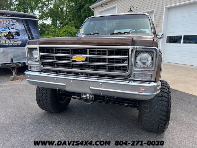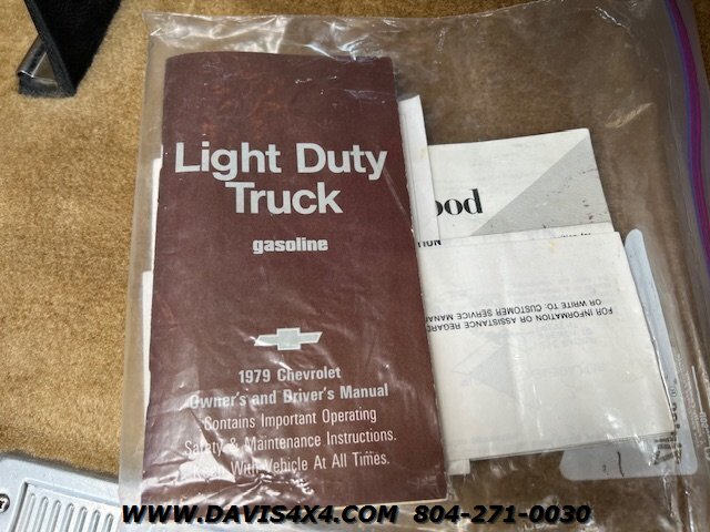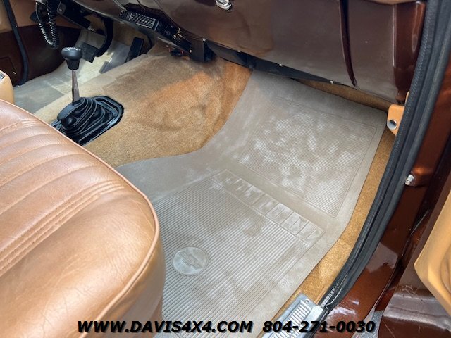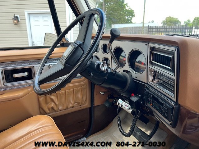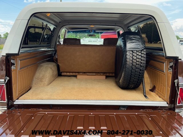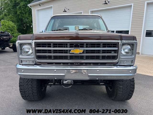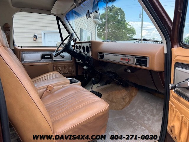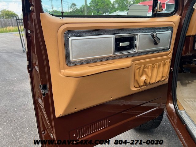 This 1979 Chevrolet K5 Squarebody Blazer 4x4 is an exceptionally rare, documented example showing just 22,000 original miles per the odometer and accompanied by a clean Virginia title. Powered by the factory 6.6L (400ci) V8, this extremely solid Blazer is finished in its correct Cordova Brown (81L) exterior over a Camel interior and was sourced from a private collection that included some of the most well-optioned, low-mileage squarebodies tucked away for decades. The factory options alone are impressive and include air conditioning, cruise control, tilt steering wheel, speedometer-equipped dash, and sliding vent windows in the removable top, while period-correct upgrades such as the 1980s-era replacement stereo with equalizer, CB radio, trailer brake controller, and accompanying owner’s manuals and paperwork further enhance its authenticity. The truck has been lifted approximately 6 inches with less than 100 miles since the suspension components were installed and sits on extra-wide 33x15.50x15 Mickey Thompson Baja ATZ radial tires mounted to 15x14 Roadhawk Weld Racing wheels. All stainless trim, chrome, and brightwork remain in excellent condition, complemented by dual exhaust and deep aluminum differential covers, with the overall presentation speaking for itself. Vehicles of this caliber routinely command six-figure results at high-end auctions; however, we would prefer to place this Blazer with an enthusiast who will enjoy it while also offering the option to add upgrades such as our steering system, track bar, power steps, larger lift, or even return it to a full stock-spec collector-grade example. The RPO code documentation clearly decodes the factory options, and we welcome any questions.