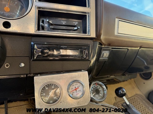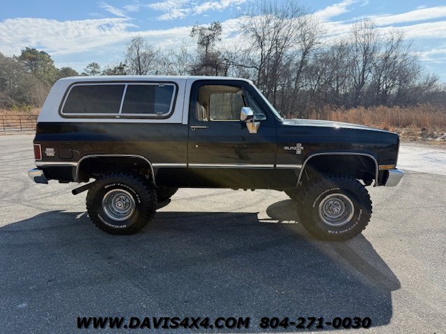 This 1983 Chevrolet K5 Squarebody Blazer 4x4 is a sharp, lifted classic that delivers the right stance, sound, and presence without being over-processed or over-priced. Under the hood sits a strong-running small block topped with center-bolt valve covers, backed by a TCI transmission controlled through an EZ-TCU transmission computer system, with the original owner’s manuals for the transmission controller still in the glove box. An Optima battery handles power duties, and the upgraded audio system features a modern stereo, Kicker pod speakers, amplifier, and rear-mounted subwoofers that give this Blazer a deep, clean sound to match its aggressive look. It rides on a 4-inch lift with excellent-tread 35x15 BFGoodrich Mud-Terrain tires wrapped around classic rally wheels, and the removable top with sliding windows keeps that true K5 versatility intact. Unlike many of our fully restored or heavily reconditioned builds, this unit is being kept straightforward to maintain an affordable price point; it will pass through our service shop for a proper safety inspection including ball joints, brakes, lights, and fluids, along with a fresh oil change and full detail, but it will stop there—any additional upgrades, restoration work, or certification-level reconditioning through our secondary shop would increase the investment. The only note worth mentioning is that due to extended sitting and extremely cold temperatures, it may benefit from a basic tune-up or carburetor refresh, as it can be slightly cold-natured on startup; once warmed up, it runs and operates as it should. Passenger side has several rock nicks in the paint, vehicle could use a compound and buff to bring the paint to its full potential. This is a great-looking, lifted Square body Blazer that offers classic 4x4 style at a very approachable price point.