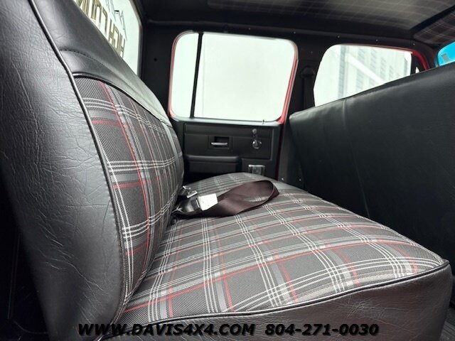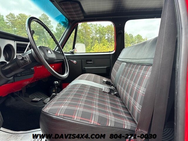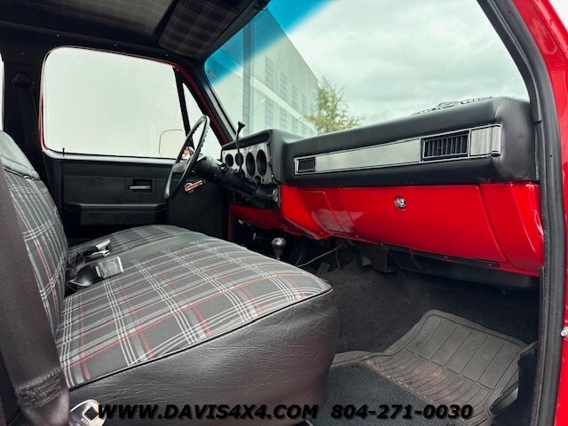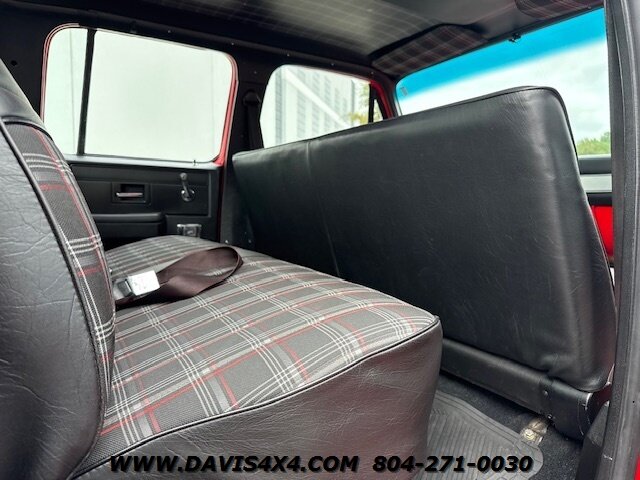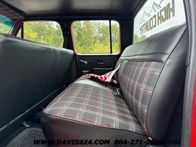1985 GMC 3500/K30 3+3 crew cab long bed Lifted pick up truck. This truck is at our favorite point of the build process where we can include the customer in the final touches. Pick your wheels and tires lift kit, size power, folding retractable steps steering and track bar, audio amps speakers, etc.. Yes guys it's at that point. Big Blok automatic, fully custom plaid interior and headliner. After this was already a completed running driving operating unit that actually recently won a car show we then spent Hundreds upon hundreds of additional hours making sure all the small items like the gauges work correct The gear indicator works all windows and locks work, The interior screws and fasteners and hardware are proper ALL AC components replaced evaporator dryer, condenser lines fittings, even a chrome compressor with CVF belt conversion with every new accessory and idler tensioner and billet brackets, remote reservoir, power steering with braided hoses high sniper fuel injection system with on board computer Dana 60 front axle corporate 14 V full floater rear with disc brake conversion Yukon cover custom exhaust fox shocks two tone paint with High Country insignias (which normally we would be against, but they actually blend well with the theme of this truck) currently on 24 inch Forged custom cut wheels with 38 x 15 50 tires, spray in bedliner, steel cowl induction hood, this truck is pretty incredible. Can it be bought the way it is currently yes would we prefer to do all of the Davis Off Road custom touches and finish off our labor of love? yes… This is definitely one of the better looking crew cabs with the color combination and interior design even though we do love our era correct restorations as well. Price point on this unit pending its finishing touches will be in the 100 to 125K area.. we can keep going or we can stop at any point now is the chance to be involved.
