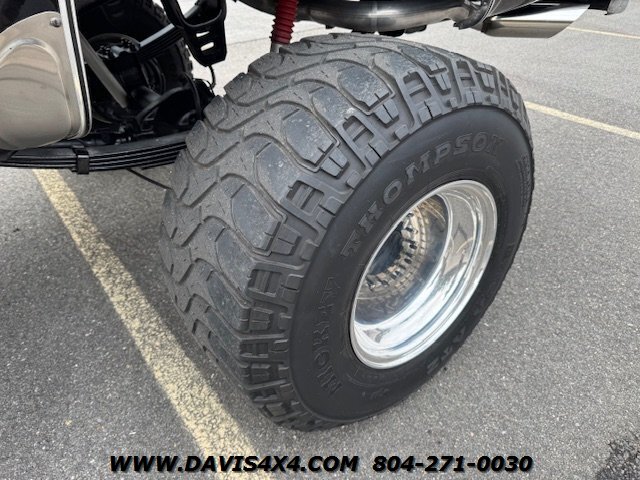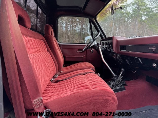 Chevrolet Silverado K10/K30 Squarebody Lifted 4×4. This big-block Chevy began life as a K10 but now carries a proper K30 upgrade, featuring a Dana 60 front axle, corporate 14-bolt rear axle, an 8-inch suspension lift, and 36x15.50x16 Mickey Thompson ATZ tires wrapped around 16x16 deep-offset two-piece aluminum wheels. The paint appears to be largely original, the body is impressively clean with no rust, and the truck has been modernized with power-folding retractable Davis Off Road steps and a brand-new Vintage/Classic Air system with all new components delivering hot heat and ice-cold A/C. Additional upgrades include a dual steering stabilizer, body-side moldings, dark tinted glass, Optima battery, and one of the most unique features—a five-speed manual transmission backing the 454 big block, a far more comfortable and versatile setup than the typical four-speed. Inside, it sports an OBS-style 40/60 seat and tilt column, with proper interior functionality including a working dome light. With an amazing stance and turnkey drivability, this truck is already a neck-snapper, but can easily be taken taller, smaller, or further customized to taste.