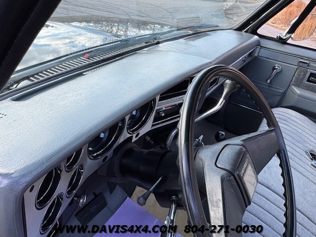 This 1986 Chevrolet Squarebody K10/K20 4x4 pickup represents a true frame-off restoration and presents as a 100% rust-free, laser-straight example finished in deep, slick black sheet metal that shows exceptionally well from every angle. The body is clean and dialed in, complemented by tight-fitting doors with zero rattles and outstanding panel alignment. Inside, virtually every component has been replaced, including new gaskets, seals, moldings, carpet, seat upholstery, dash components, and instrument cluster surround, creating a fresh, factory-crisp feel throughout. The upgraded audio system features a retro-style head unit, Kicker pod speakers integrated into the kick panels, along with an amplifier and subwoofer neatly mounted behind the seat for a powerful, clean sound. Under the hood sits a brand-new Blueprint crate engine paired with eight-lug axles, all housed in a professionally refinished engine bay brought to show-quality standards. The gloss black firewall and inner fenders are detailed to perfection, accented by tasteful chrome dress-up components, ceramic-coated long-tube headers, and a brand-new exhaust system running front to back. An aftermarket heat and air conditioning system has been installed and functions flawlessly, ensuring modern comfort in this classic platform. The suspension features a proper lift utilizing all new springs—no block lift—providing a clean stance and improved geometry, riding on 35-inch Toyo Open Country Mud Terrain tires mounted to Mickey Thompson Classic alloy wheels with Warn front locking hubs. Additional upgrades include a spray-in bedliner, shaved tailgate handle relocated to the interior, LED dome light conversion, rear diamond plate step bumper, and a completely new fuel system including gas tank, sending unit, fuel lines, hoses, belts, and brake lines. This truck has undergone a comprehensive, detail-oriented build with no corners cut. Be sure to watch the Davis Drives YouTube video linked on our website for a full walkaround and in-depth breakdown of every component. As always, further customization and upgrades are available upon request—there are truly no limits when it comes to building one of our custom Squarebody trucks.