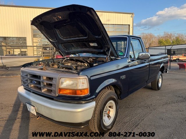 This regular cab long bed pickup is an above-average example that earned its place on our lot thanks to its cleanliness, reasonably low original miles, local ownership, and well-documented history. It is powered by the dependable 4.9L inline-six fuel-injected engine paired with a manual 5-speed transmission, known for durability and ease of service. The truck is equipped with a spray-in bedliner, dual fuel tanks, rear bumper with ball mount, and a clean cloth bench seat showing minimal wear, complemented by a durable rubber floor mat. The dashboard is in excellent condition with no cracks, aside from one very small fingernail-sized blemish. With just 99,000 original miles, this truck has also received a full professional repaint by one of the best shops in the area to correct the known factory paint issues common to these model years. A substantial file of maintenance records and documentation—nearly an inch thick—will accompany the truck, reflecting consistent upkeep and careful ownership.