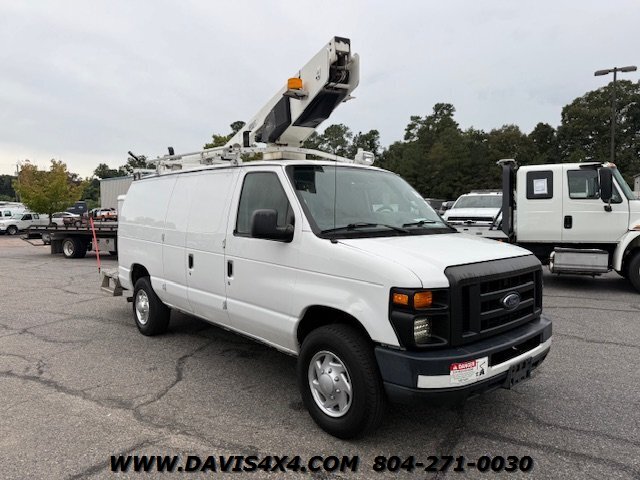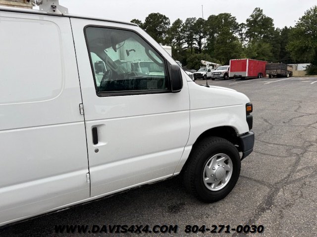 This Ford F-350 Super Duty van is equipped with a Versalift bucket system and powered by the reliable 5.4L engine, making it an ideal choice for utility and service work. Outfitted with practical features such as power windows, power door locks, a backup camera, and a power inverter that provides electricity both inside the van and up in the bucket, it is designed for maximum convenience and functionality on the job. The Versalift, model VANTEL 29N-01, offers a 29-foot platform height with a 350-pound weight capacity, allowing operators to safely handle a wide range of elevated tasks. Well-suited for electrical, telecom, signage, and general maintenance work, this unit combines the versatility of a service van with the efficiency of an integrated lift system. Bucket vans of this type are increasingly difficult to find, especially in ready-to-work condition, making this an excellent opportunity for contractors and service professionals. For more bucket trucks and other specialty work vehicles, be sure to visit our website at Davis4x4.com.