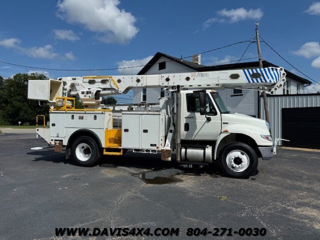 2012 International Altec Utility Truck Boom/Bucket Manlift Heavy Duty Commercial Truck. Diesel powered with the large altec articulating boom, low mileage, 350 pound platform capacity front bumper, heavy duty winch with what appears to be brand new cable, power out riggers, automatic push button Allison transmission, 11’ 4” Traveling heights and 55 feet of working height, rear pintle tow ball and air hookups, Michelin tires 22.5, 105 degree articulating boom, work Lights and plenty more. Power company locally owned so this truck is not rusty underneath as most would be and has been fleet maintained since new as you can see from the photos even the storage boxes are not beat up and worn down like most. Photos may be similar due to the fact we have multiple of these available.