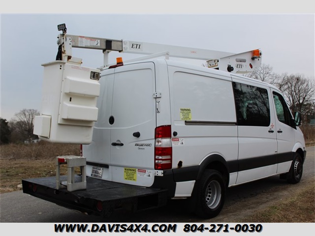 Sold to a customer from Newark DE. 2013 Mercedes-Benz Sprinter Cargo 3500 Series 144 WB Dual Rear Wheel with ETI Man Lift Boom Bucket Truck set up Bluetec Mercedes Diesel Engine. These vans were about as high dollar as they get equipped this way, pushing close to $100,000 when new. Local fleet owned and maintained and serviced properly, full internal bin, shelf rack, and safety divider package. Michelin heavy duty tires all the way around, rear view camera system, CD player, stereo, automatic transmission, heat AC, power windows, 28ft platform height, power door locks, large step platform, LED lights, LED strobe lights all the way around, remote movable spotlight system and much more. We have been over each one of these vans (as we do have multiple available), serviced and inspected, and made sure they were 100% ready to go.