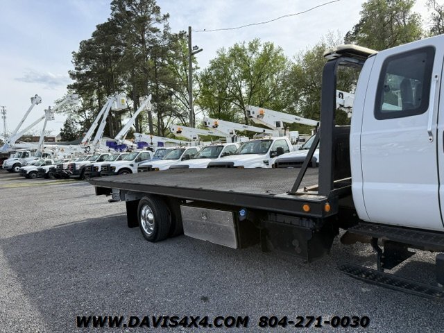 Ford F-650 Extended Cab Diesel Tow Truck Rollback Flatbed. This unit is powered by a Cummins turbo diesel engine and has had a single owner, with no commercial automotive towing use. It was previously used by a tractor and mower delivery company, resulting in very light use compared to most rollback trucks. This extended/quad cab is equipped with a Century steel bed by Miller Industries measuring 21.5 x 102, and offers six-passenger seating with XLT power options. Features include a quick-dump rear suspension, airbag/air ride system, left and right side toolboxes, high-polished alloy wheels, and a rear wheel lift with towing ball mount. Additional highlights include a strobe light bar, LED lighting, and a textured bed liner for added protection. This is a turnkey truck that has been freshly serviced, inspected, and is ready to operate. Also this vehicle has six brand new tires, it has also been freshly serviced,inspected, and greased. The engine is a 6.7L Cummins with 280hp