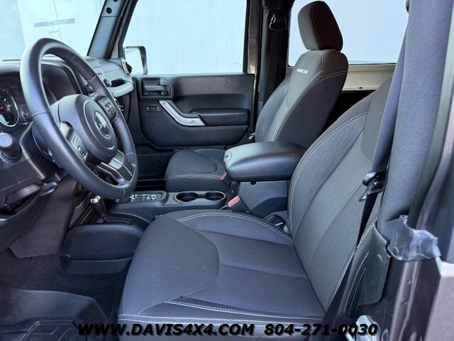 This 2016 Jeep Wrangler Rubicon Two-Door 4x4 is an exceptionally clean, extra-low mileage example that is hands down one of the best-kept Jeeps you will find, whether two-door or four-door. Professionally outfitted with a 3-inch suspension lift featuring Synergy springs, JKS control arms, an oversized adjustable JKS track bar, Fox shocks, Fox steering stabilizer, braided brake hoses, and an adjustable rear track bar, it is both trail-ready and road-capable. The Jeep rides on five matching 17-inch Fuel wheels with proper offset, wrapped in 35-inch Toyo Open Country mud-terrain tires showing only a few hundred miles of use, supported by a heavy-duty RC spare tire brace. Additional features include a hardtop with removable T-top panels, Rough Country side entry step protectors, tinted rear glass with defroster, and a premium stereo system. Top to bottom, inside and out, this Jeep is perfection—no scratches, nicks, dings, leaks, or even a spot of undercarriage rust. The previous owner is a meticulous local enthusiast who kept the vehicle indoors and maintained it to the highest standard, making it feel as close to 2025 condition as possible. Finished in a rare and desirable color with the sought-after two-door Rubicon configuration, this Jeep is an ideal choice for towing behind an RV, cruising the beach, or tackling trails with confidence.