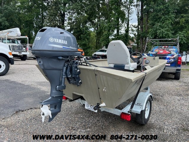 MV 1650 T Alumacraft boat this boat has had an extreme light amount of use if anything may be a few hours. Equipped with a Yamaha 25 four stroke. This boat was owned by a corporate company is sitting on an ez loader trailer and is ready to put to use. Wired for a fishfinder depth finder, but we do not have that unit. Delivery assistance available call for questions or details.