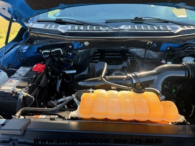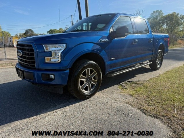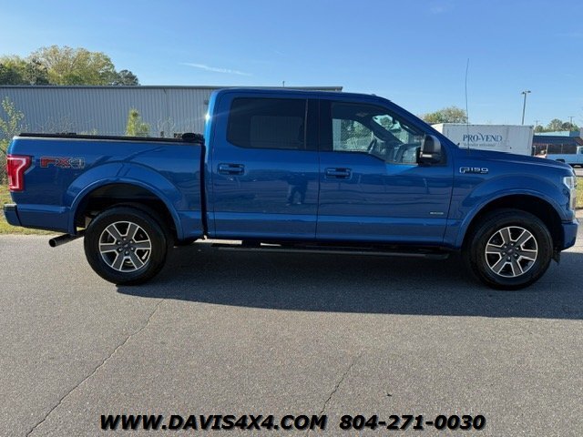 2017 Ford F-150 Crew Cab FX4 Off-Road 4x4. This unit is a true FX4 package truck with color-matched bumpers and handles, FX4 interior, center console shifter, touchscreen stereo, trailer backup assist, shift-on-the-fly 4x4, traction control, and remote start. It is also equipped with a soft tonneau cover, bed mat, alloy wheels, rear tow hitch, rearview camera, side steps, power inverter, parking assist, and all the expected options. This unit is finished in blue over a black/dark charcoal interior—one of the most popular color combinations. This is a good, affordable four-wheel-drive half-ton pickup truck.