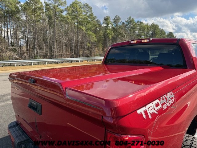This Toyota Tundra TRD 4x4 Sport is a sharply outfitted, extra–low-mileage example of the legendary i-Force 5.7L V8 platform, locally owned, extremely well kept, and lifted with a subtle leveling kit that gives it a bold, confident stance without compromising ride quality. It sits on 305/20 all-terrain tires wrapped around black-and-milled Fuel Off-Road wheels, complemented by color-matched bumpers, trim, and a matching bed cover, plus side steps, tinted windows, and a clean custom pinstripe for a finished, sporty look. The interior has upgraded speakers with an amp and sub, and the truck is equipped with a rear tow hitch and rearview camera system. Aside from a couple of extremely light scuffs on the front bumper that are hardly noticeable unless pointed out, the truck is exceptionally clean, runs out 100%, and is fully ready for the road. A hard-to-find, great-mileage TRD Sport that checks all the boxes—view this and our full inventory anytime at Davis4x4.com.