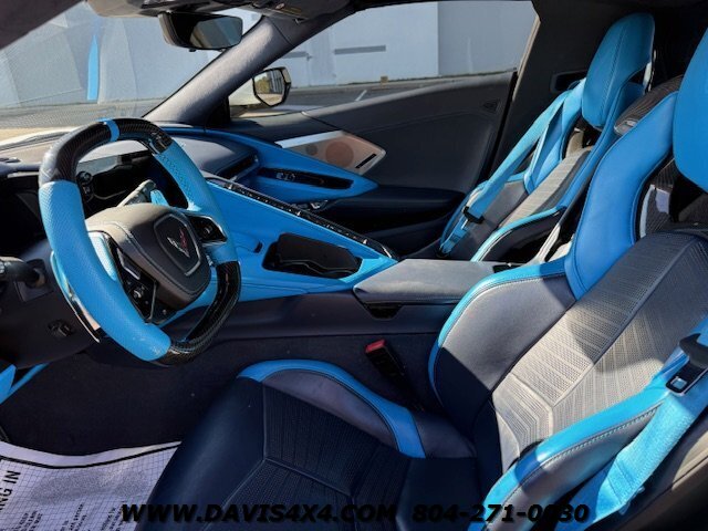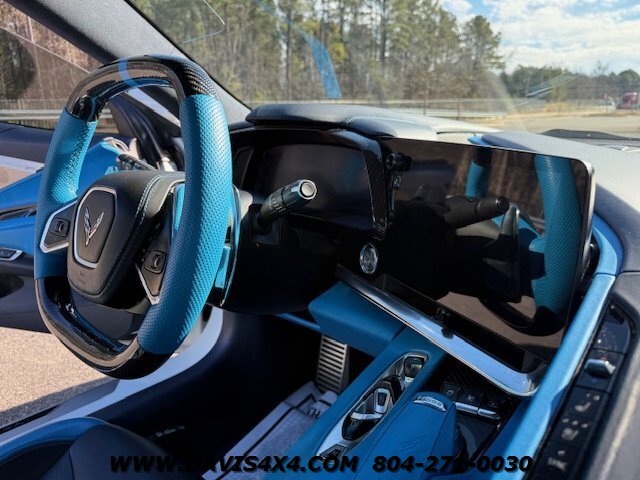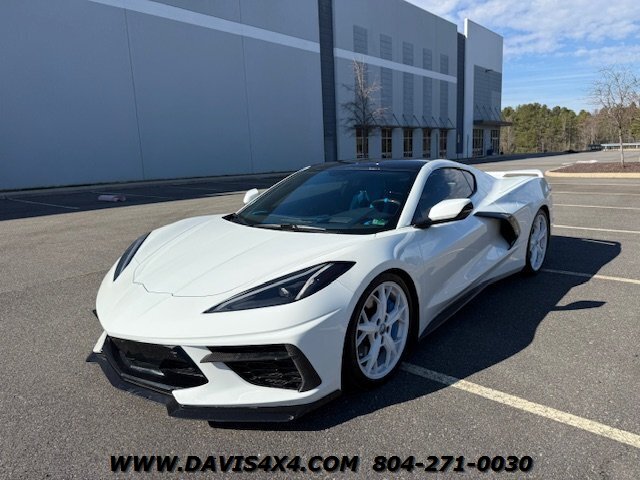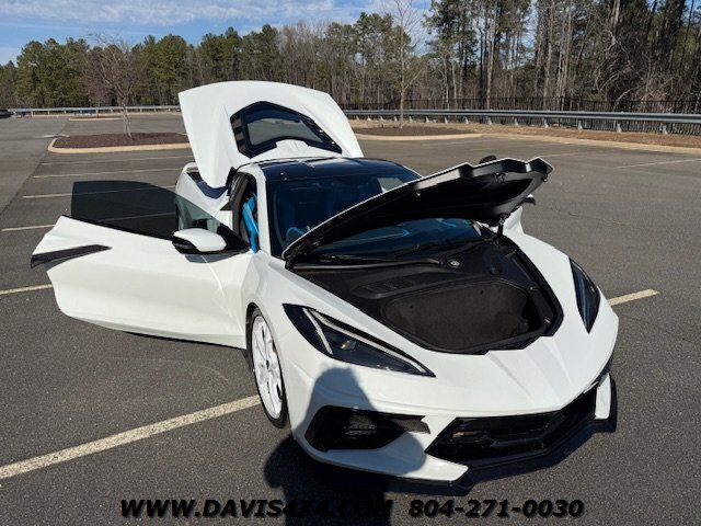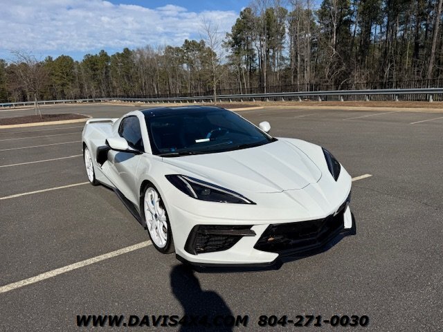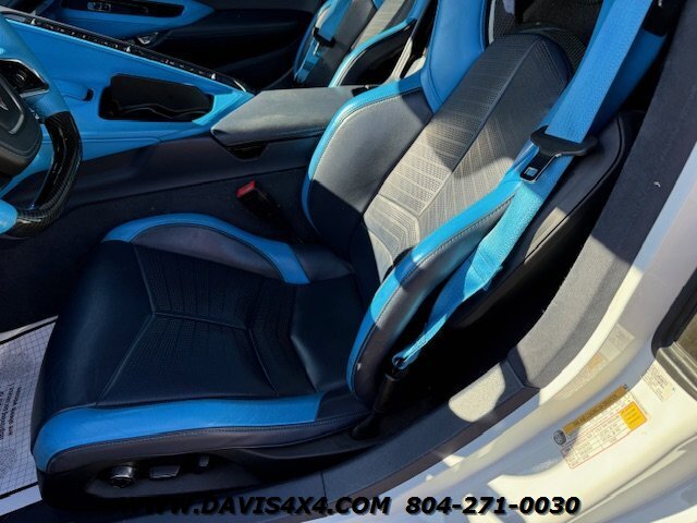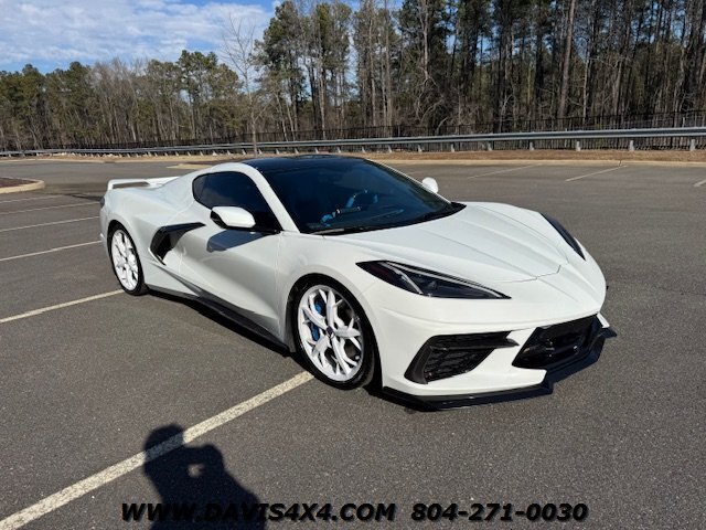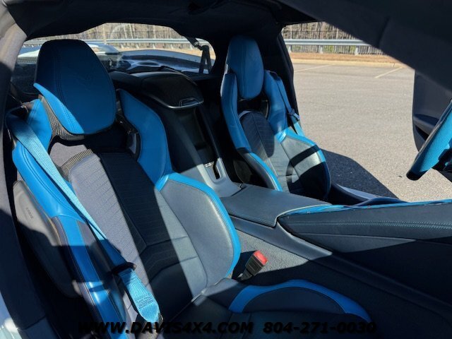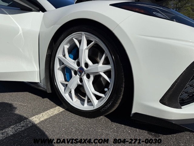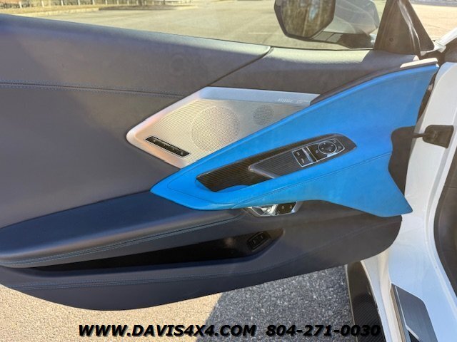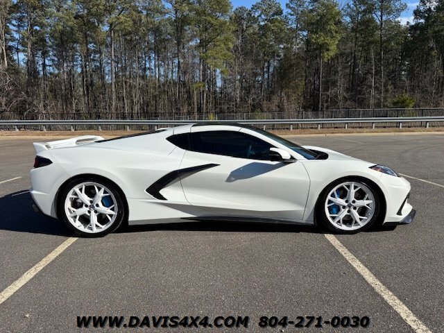 This 2020 Chevrolet Corvette C8 3LT Stingray Coupe is a highly impressive, well-optioned example equipped with the desirable highest 3LT trim package, finished in a striking artic white exterior over a twilight blue interior with black leather inserts and carbon fiber accents. It features the Bose premium audio system and virtually every available option, and has been well serviced throughout its life, with primarily highway miles and a fresh service and inspection just completed. This Corvette is truly turnkey and ready to enjoy, enhanced by tasteful upgrades including white powder-coated wheels, blue brake caliper accents, and additional carbon fiber exterior trim. The car has been partially wrapped and protected with PPF for most of its life, contributing to its excellent overall condition. The only minor negatives worth noting are some visible aging in select areas of the PPF and a few small blemishes on the front bumper and splitter; however, for a supercar at this price point, there is very little to fault besides the repaired crack in windshield.