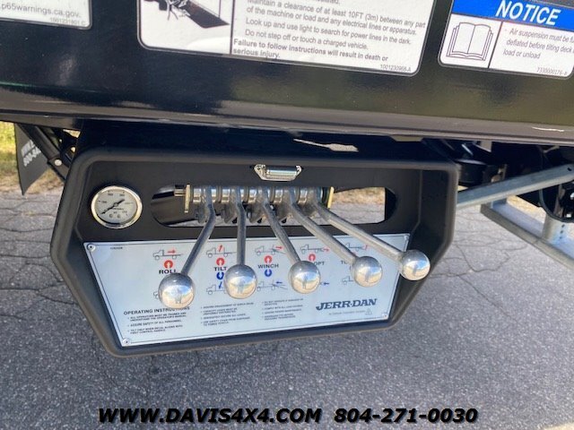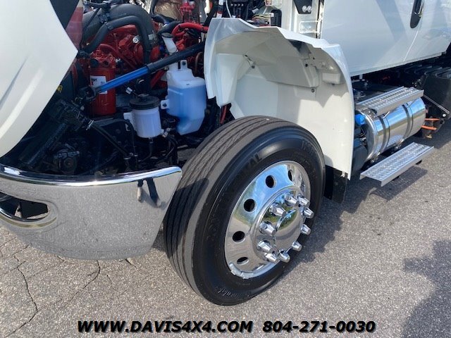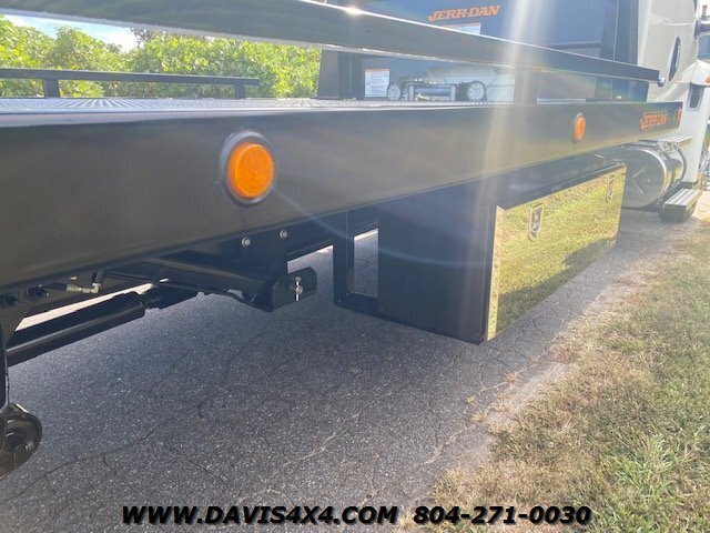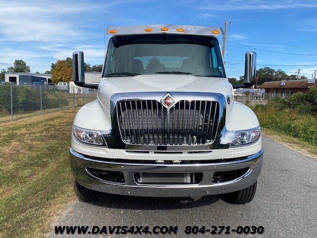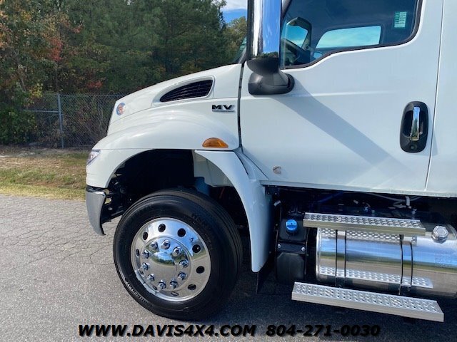 International MV607 Extended Cab Rollback Tow Truck / Flatbed Carrier. This MV607 runs the trusted Cummins 6.7L turbo diesel paired with an Allison automatic, and is outfitted with a 22' x 102" JerrDan steel bed with removable rails, a two-car wheel-lift, and a full ready-to-tow gear package including safety equipment and recovery accessories. The truck features alloy wheels, air-ride suspension, an onboard air compressor with rear air chuck hookup, mudflaps, and a remote handheld winch control, along with a clean, well-equipped interior offering all expected power options for daily professional use. This unit is fully built, titled, and in stock now—no waiting, no delays, no games—and is ready to be put straight to work. Financing options are available, and we currently have 150+ commercial tow trucks and work vehicles on hand from makers such as Peterbilt, Kenworth, Hino, Freightliner, Ram, Dodge, Chevrolet, Ford, and more.