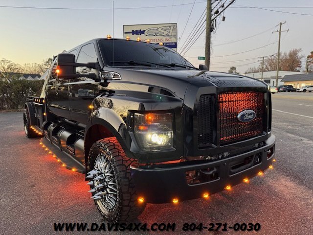 This 2021 Ford F-650 Super Duty King Ranch six-door custom hauler is a true show-quality build, completed in 2023 with flawless fit and finish from top to bottom and absolutely no shortcuts, clean title in hand and owned outright—no consignment, no off-site nonsense. Riding on custom-cut 24-inch American Force alloys with brand-new 38-inch all-terrain tires, this dually tow rig is purpose-built for serious work or serious fun, whether hauling horses, a race car, a boat, or the whole family with a camper in tow. It features an 11-foot Western-hauler-style bed with integrated storage, mounted matching spare, removable dual stacks, abundant load space for motorcycles, ATVs, or a golf cart, and a gooseneck setup easily convertible to fifth-wheel. The exterior is fully color-matched with a murdered-out tint package, custom steps, dual custom fuel tanks with storage boxes, extensive LED lighting upgrades, underglow, and a Kelderman rear air-ride suspension. Inside, the cabin is just as custom, with a star headliner, upgraded Bluetooth audio, Husky mats, custom rear heat and A/C, three full rows of seating with legal seatbelts for nine passengers, and fold-up consoles at each position. Built by CABT—one of the most respected names in the industry—this truck retains its factory-ordered, uncut frame and unmoved axle, unlike many stretched builds, and the quality is impeccable throughout. Fully finished, fully sorted, no 1–2 year wait, and exactly as impressive as it looks—watch the detailed walk-through on the Davis Drives YouTube channel and call 804-357-9768 for direct info.