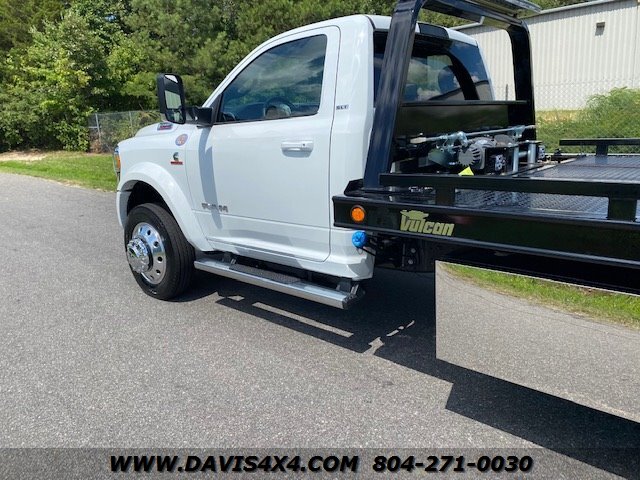 Sold to a customer from Hauppauge NY. 2022 Dodge Ram 5500 Heavy Duty Rollback Diesel Wrecker/Tow Truck. This two car carrier is a Miller industries Vulcan bed with wheel lift 19.5 foot long 102 inch wide, Cummings turbo Diesel engine, left and right side oversize hidden handle toolboxes, mudflaps, multiple tiedown bed provisions, Ecco Strobe light bar, 19.5 alloy wheels, wheel lift with ball mount, LED lights light bar, Ramsey winch system, side steps, fold out towing mirrors, well-equipped SLT interior, three passenger seating, both keys with remote entry fobs, starter towing kit and safety kit included. This truck is fresh ready to roll with only delivery mileage. Multiples of these Rams available multi vehicle purchase deals excepted 40+ towing and commercial units in stock available now.