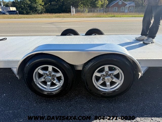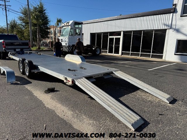 If you’re looking for the ultimate all-around trailer for hobby or professional use, this Aluma 8224H checks every box. We’ve personally used this trailer several times, and it tows absolutely flawlessly—stable, balanced, and easy to maneuver. Ideal for hauling multiple side-by-sides, a show car, or even two compact vehicles, it’s light enough to be pulled by an SUV or light-duty truck while still offering serious capability. The flat deck measures 80 inches wide with stake pocket extensions bringing the usable width to approximately 84 inches, and an overall length just under 25 feet. Additional features include multiple D-ring tie-downs, hideaway easy-remove loading ramps, dual Dexter axles with six-lug alloy wheels, excellent-condition tires, quick-remove aluminum fenders, a breakaway box, and a tongue jack with wheel. This is one exceptionally well-designed trailer—practical, lightweight, and one of the most convenient, user-friendly haulers you’ll find anywhere.