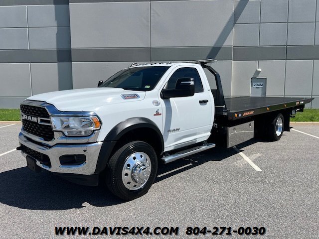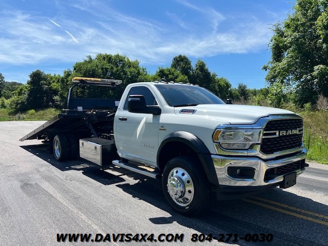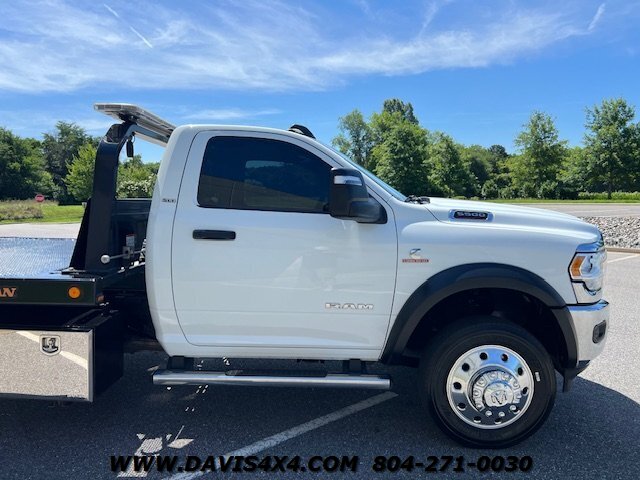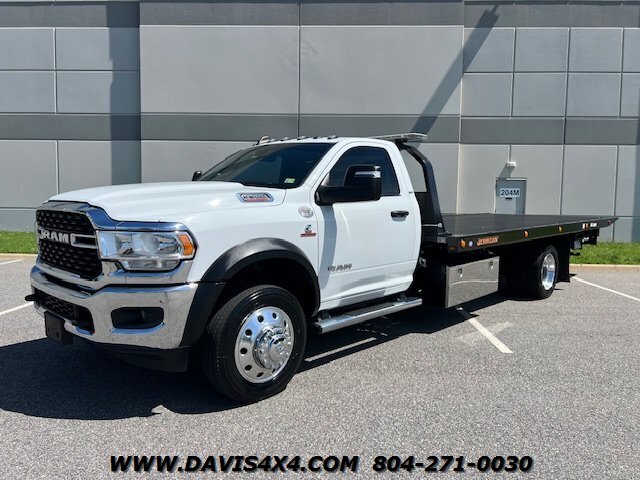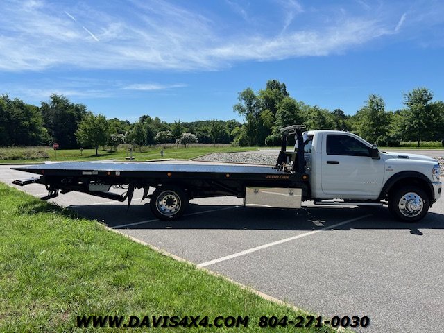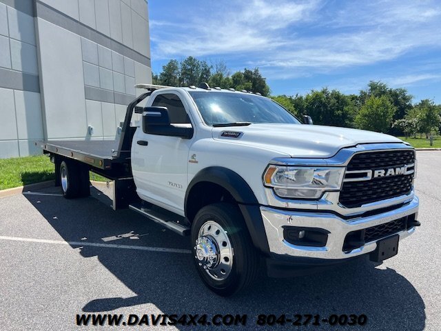 2023 Ram 5500 Cummins Flatbed Tow Truck Jerrdan Rollback. These are Sample Pictures. Vehicle is currently going through our detail and service process. This unit was locally owned and more than likely sold by us when it was basically new to one of our faithful customers. New truck arrived, and this one came out of rotation. This unit is running the large 102x20' steel deck JERR-DAN bed with wheel lift and wireless winch control. Cummins turbo diesel engine LED light bar LED lights fitted carhartt seat covers over top of perfect condition seat seats installed when almost new, WeatherTech floor mats three passenger seating SLT loaded interior power windows, power door locks tilt cruise, dark, Tint Windows, side steps, alloy, wheels, fog, lights, brand, new front tires, and 75% rear tires. This truck is extremely clean. Well kept maintained properly has the rear receiver, towing ball apparatus for trailer towing and is equipped and ready to put to work.