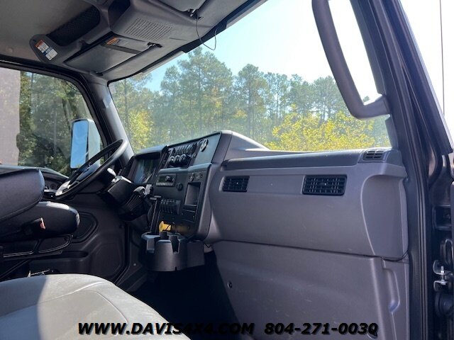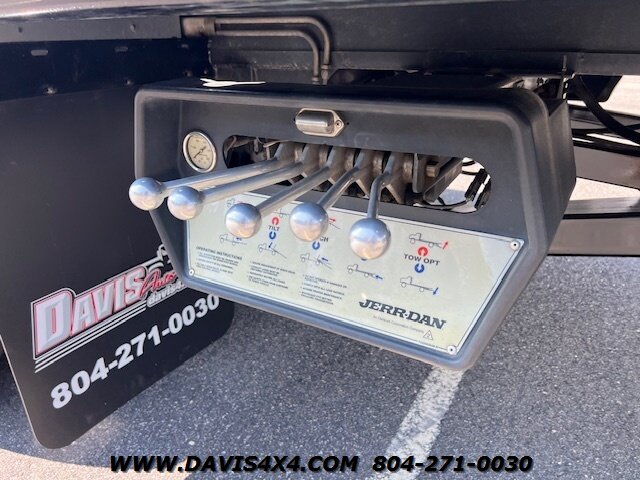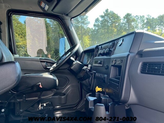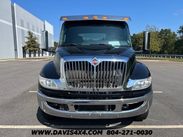 This 2023 International MV Extended Cab Rollback Tow Truck is a sharp, road-ready unit powered by a 300 HP Cummins turbo diesel engine, delivering both strength and reliability. Designed to seat up to five passengers, it offers comfort with driver and passenger air-ride seats, dark tinted windows, and an updated interior complete with a Bluetooth stereo system. The truck is outfitted with a Jerr-Dan steel 22' x 102" bed, dual toolboxes, and a convenient trash can mount, along with a rear wheel lift and towing ball mount for added versatility. Bright LED work lights, a strobe light bar, and polished alloy fuel tanks provide both safety and style, while the 22.5" polished alloy wheels complete its clean, professional look. Finished in jet black, freshly serviced, and fully inspected, this truck not only stands out visually but is also equipped and dependable for any towing operation.