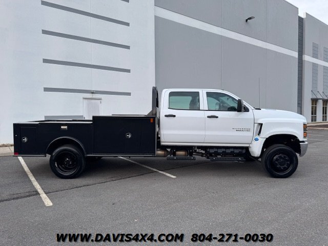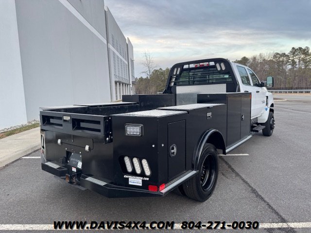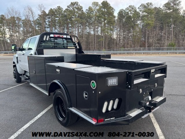 2024 Chevrolet C/K 5500 HD Crew Cab 4x4 Silverado Kodiak/TopKick with just 8,000 miles, powered by the proven Duramax diesel paired to an Allison automatic transmission, factory four-wheel drive, and dual rear wheels, making this a serious heavy-duty hauler that still presents like a nearly brand-new truck. This full four-door unit is equipped with a high-quality CM Truck Bed featuring a hideaway in-bed gooseneck ball, rear receiver hitch with full lighting hookup, drop-down tailgate, extensive auxiliary LED lighting, and lockable top and side storage compartments for maximum utility and security. Bed dimensions are as follows: inside measurements of 11.3 feet long by 4.5 feet wide, with overall bed measurements of 11.5 feet long by 7 feet 10 inches wide, offering excellent capacity for both commercial and recreational hauling needs. The six-passenger interior is in perfect condition, showing virtually no wear, further reinforcing how lightly used this truck truly is. Whether left stock or taken to the next level with our custom wheel and tire packages, this 5500 HD represents the ultimate work-and-play platform—equally suited for commercial duty, heavy towing, or personal use. Simply put, this is a hauling dream vehicle with versatility, reliability, and presence to match.