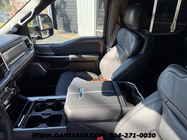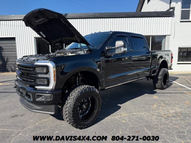 2025 Ford F-250 Super Duty Platinum High Output Diesel. This crew cab short bed was custom-ordered with a specific build in mind, with the purchase price—before any modifications—totaling just over $100,000 including taxes and fees. The original window sticker is included, detailing all factory options. In addition to the factory equipment, the truck features a 4-inch BDS suspension lift with Fox shocks, installed by Davis Off Road and backed by a lifetime warranty. Additional upgrades include a full bed cover, spray-in bed liner, bed mat, full-body PPF (paint protection film) clear wrap, and a ceramic coating applied to the entire truck—including the wheels. The windows are tinted with premium film that carries a seven-year protective warranty. The truck is flawless, showing zero marks, nicks, dings, or signs of wear—it truly presents as brand new. With only 800 miles on the odometer, it was built for one of our regular customers who quickly realized he should have opted for the dually version to better tow his boat over long distances. This truck includes nearly $20,000 in professionally installed upgrades at no additional cost, and all documentation for the modifications is included.