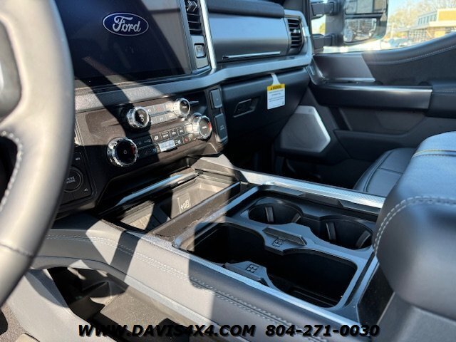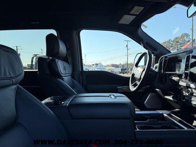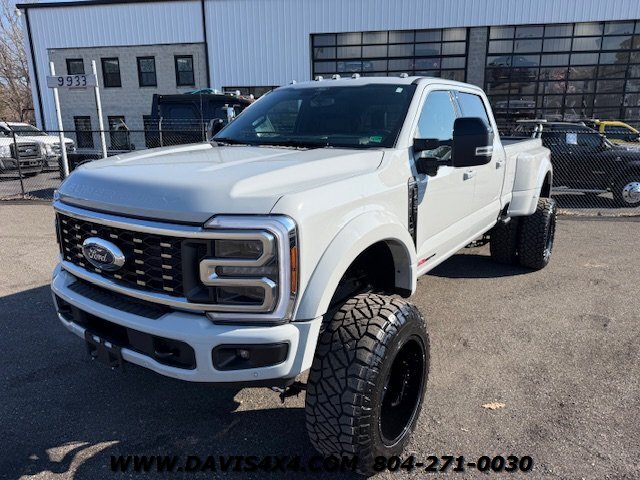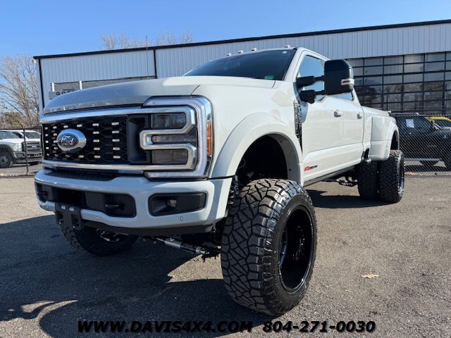 . We could not resist we lifted this truck and have driven it a few hundred miles making it the perfect riding driving beast with zero squeaks or rattles no shimmys no shakes. This is built RIGHT! 7" PMF alpha kit, clocking ring in the tcase for proper 4x4 function, matching traction bars, fox shocks with res and dual matching stabalizers, 38" Nitto ridge grappler tires and 22" American force wheels powdercoated black super dually settup. This 2026 Ford F-450 Super Duty Platinum 4x4 Dually is an exceptional top-tier truck finished in Avalanche Gray with a luxurious Black Onyx interior accented by blue trim piping. Powered by the high-output 6.7L Power Stroke turbo diesel engine, it’s equipped with the FX4 Off-Road Package and loaded with premium features throughout. Highlights include the console safe, rapid heat supplemental heater, engine block heater, dual alternators rated at 410 amps, and upfitter switches for additional accessories. Comfort and convenience options abound with the power twin-panel panoramic sunroof, 12-inch display screen, power-retractable steps, max-recline driver and passenger seats, and Ford Co-Pilot Assist for advanced safety and driver aid technology. The truck also features a full 360-degree camera system and built-in 5G modem for ultimate connectivity. Every feature and specification can be found on the window sticker shown in the photos,